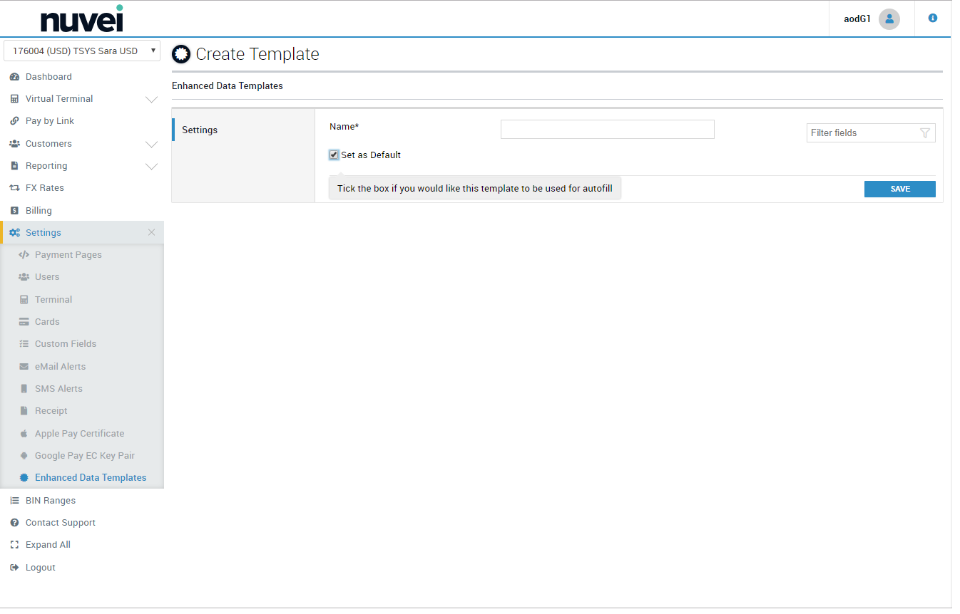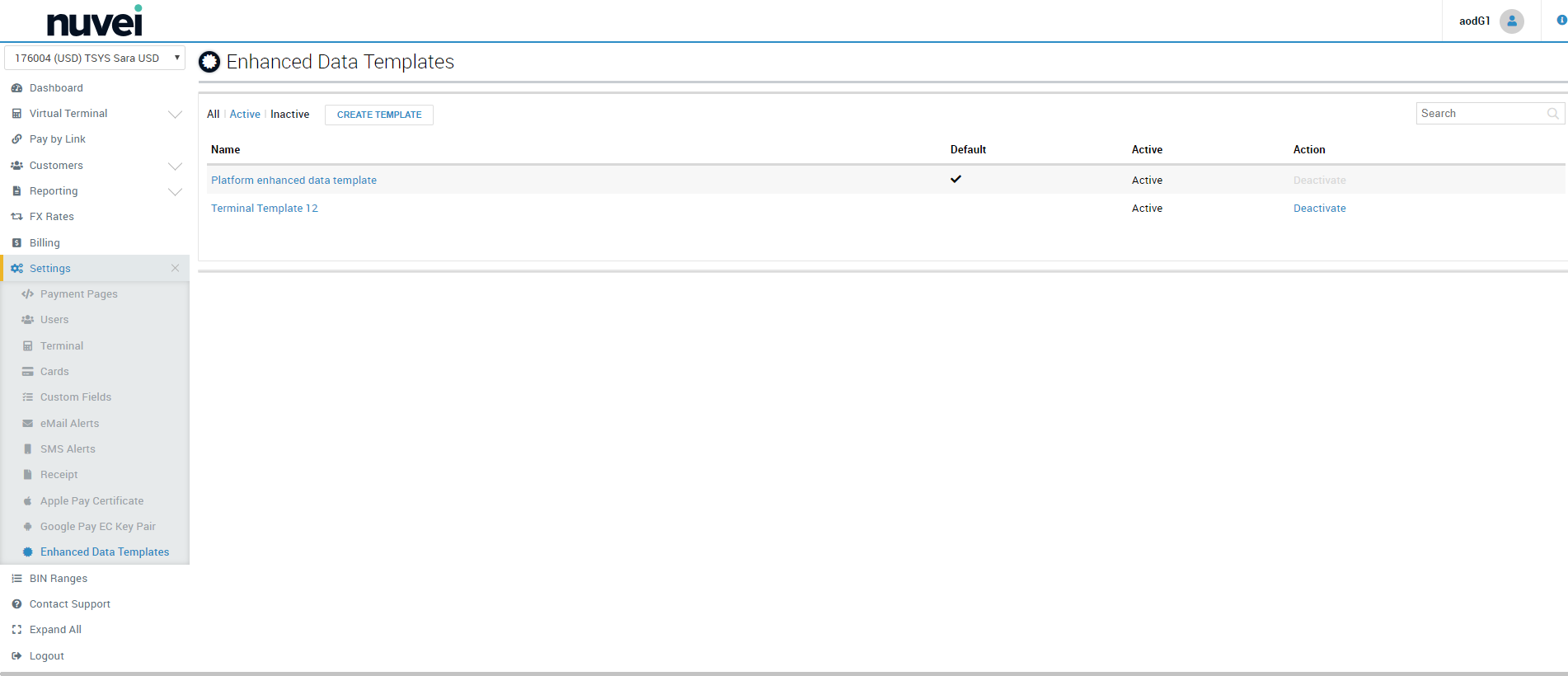 Once Enhanced Data feature is enabled for a Terminal, It's possible to configure Enhanced Data Templates.
