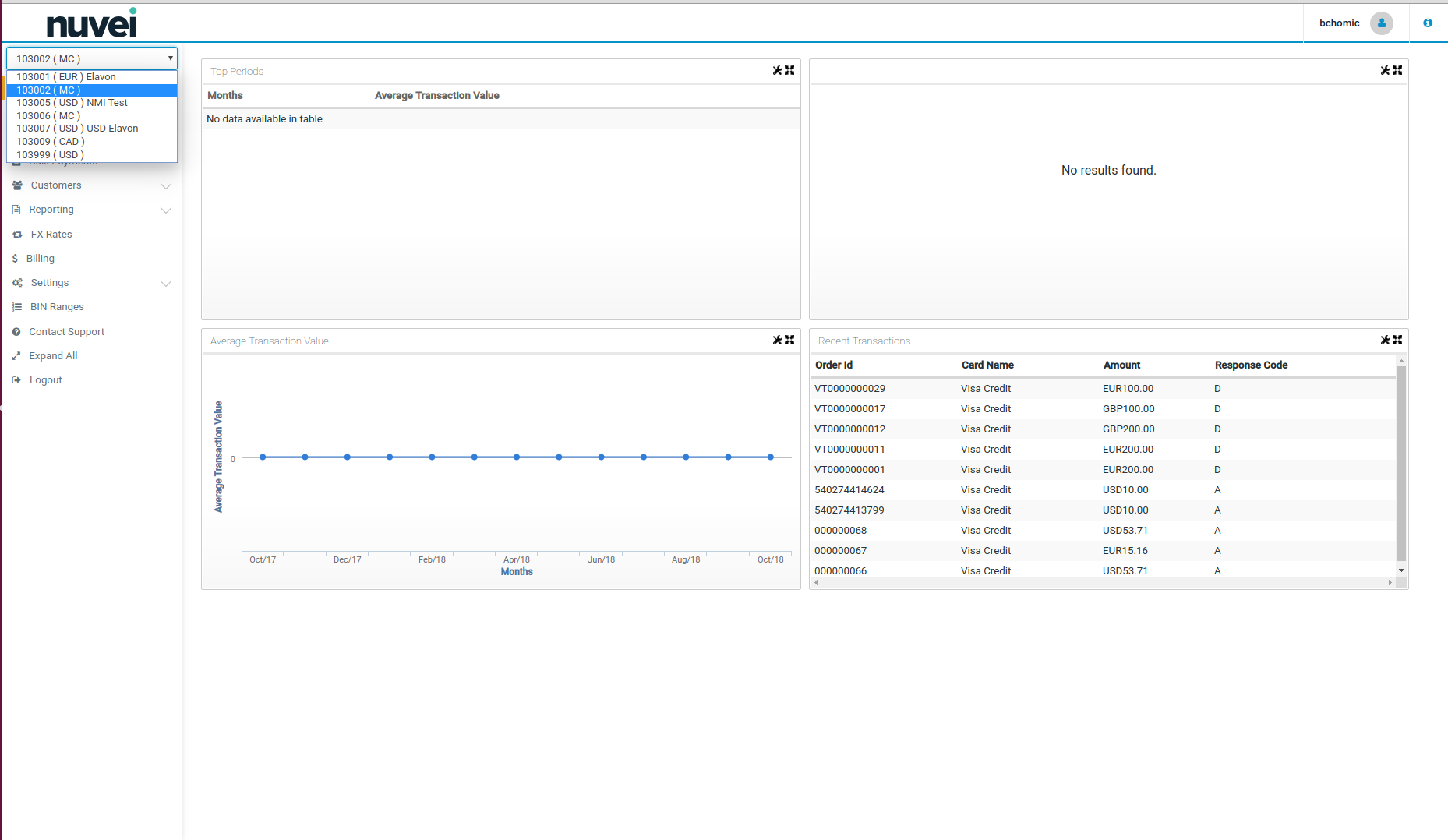 If there is more than one terminal assigned to your account, this will be a drop-down list with all your active terminals and their currencies. You can switch between your terminals using this menu, and the currently active terminal will be highlighted.